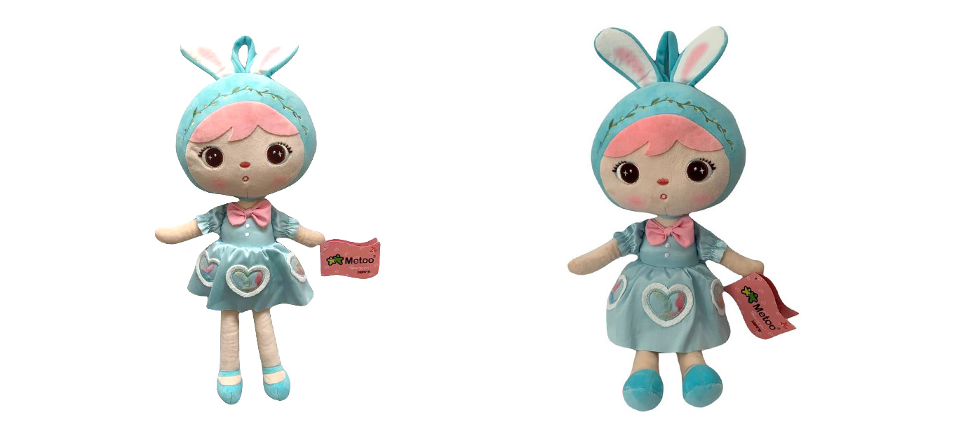 Metoo é uma marca famosa na Europa, que tem fabricação chinesa com 20 anos de mercado, design lúdico, fofo e de altíssima qualidade, detalhes no modelo “Angela“ que não passam despercebidos como (olhos sonolentos, bochechas rosadas, orelhas de coelhinha e vestido delicado), são lindas bonecas de plush 100% poliéster e enchimento 100% fibra de poliéster, presente perfeito para seu bebê, além de ter vários modelos para que possam colecionar.